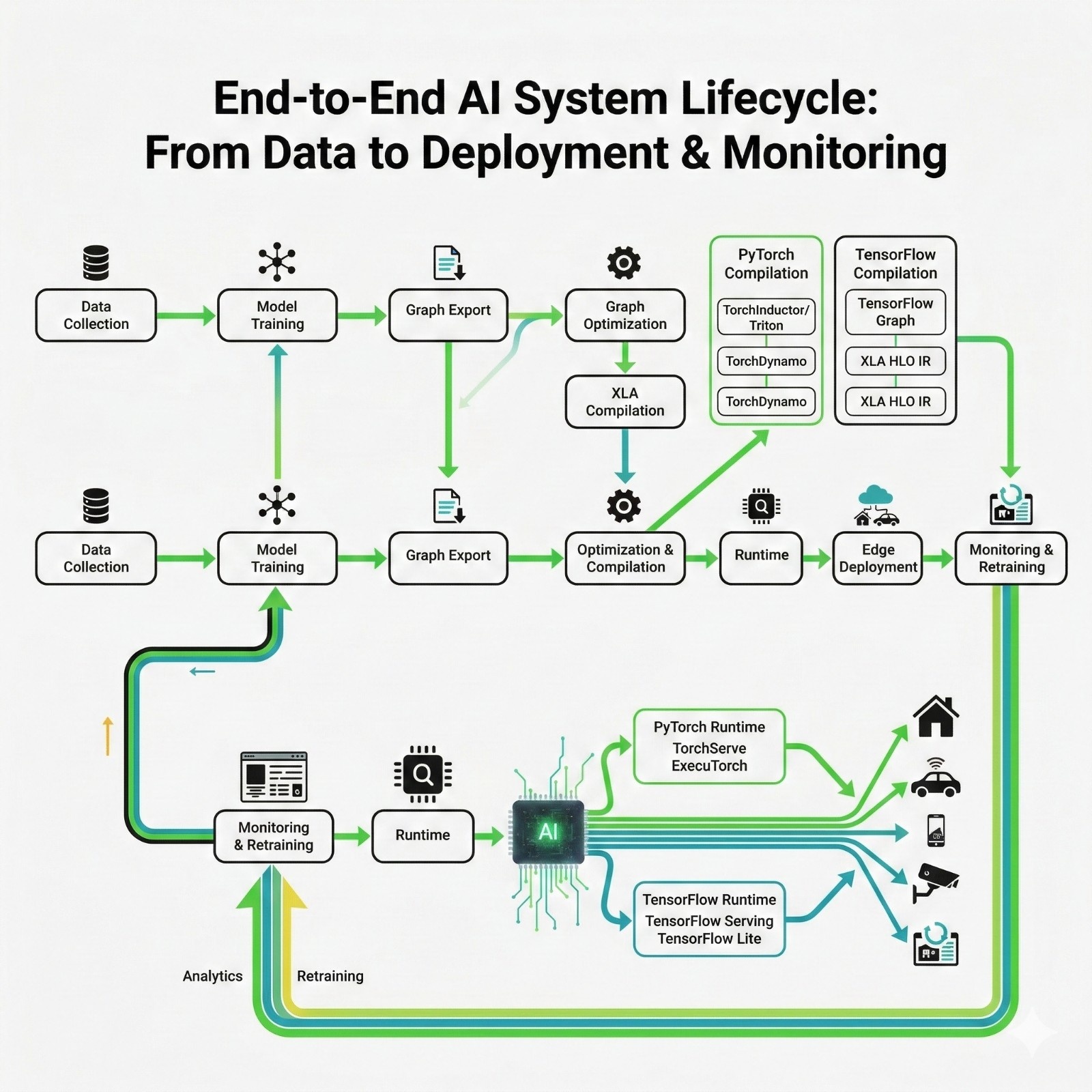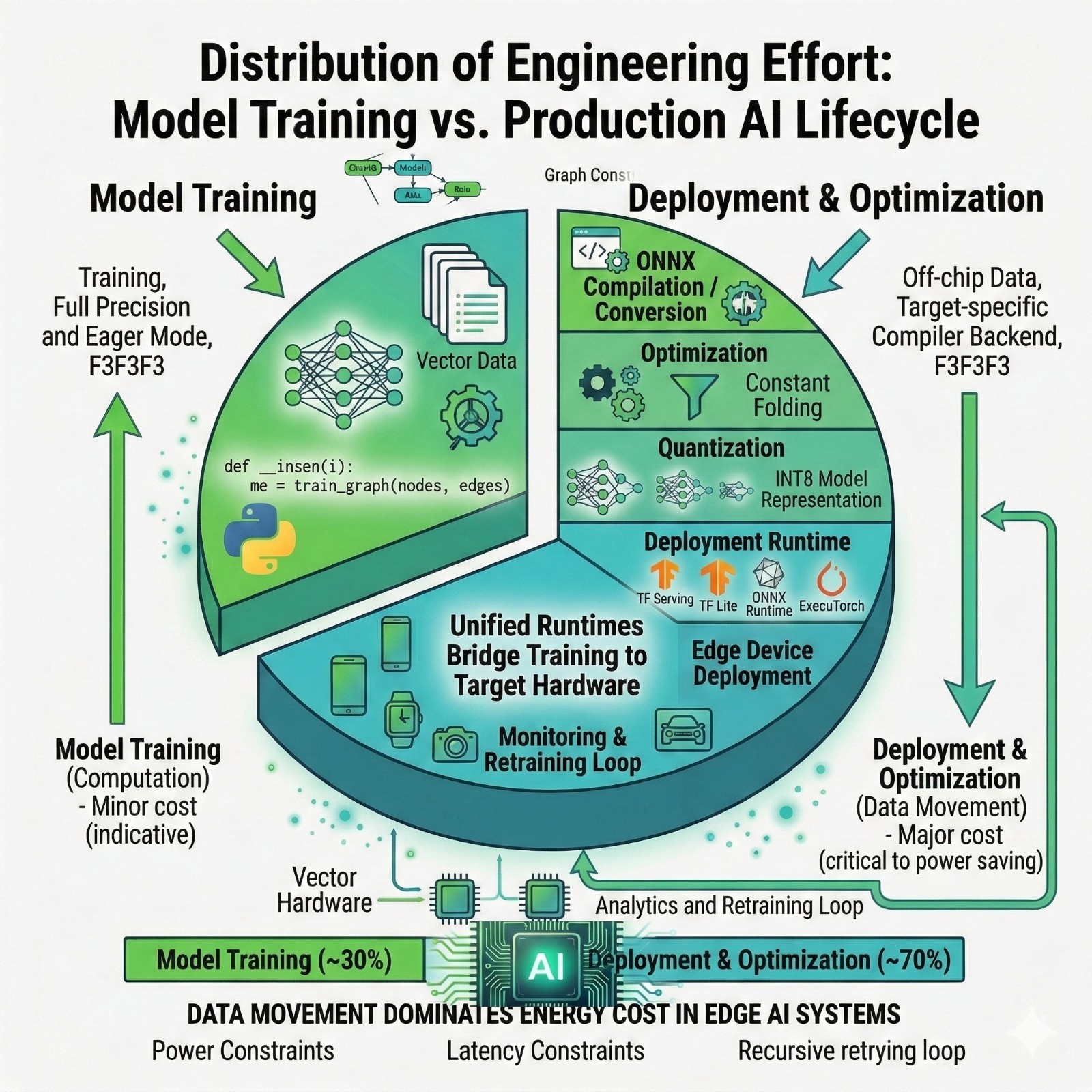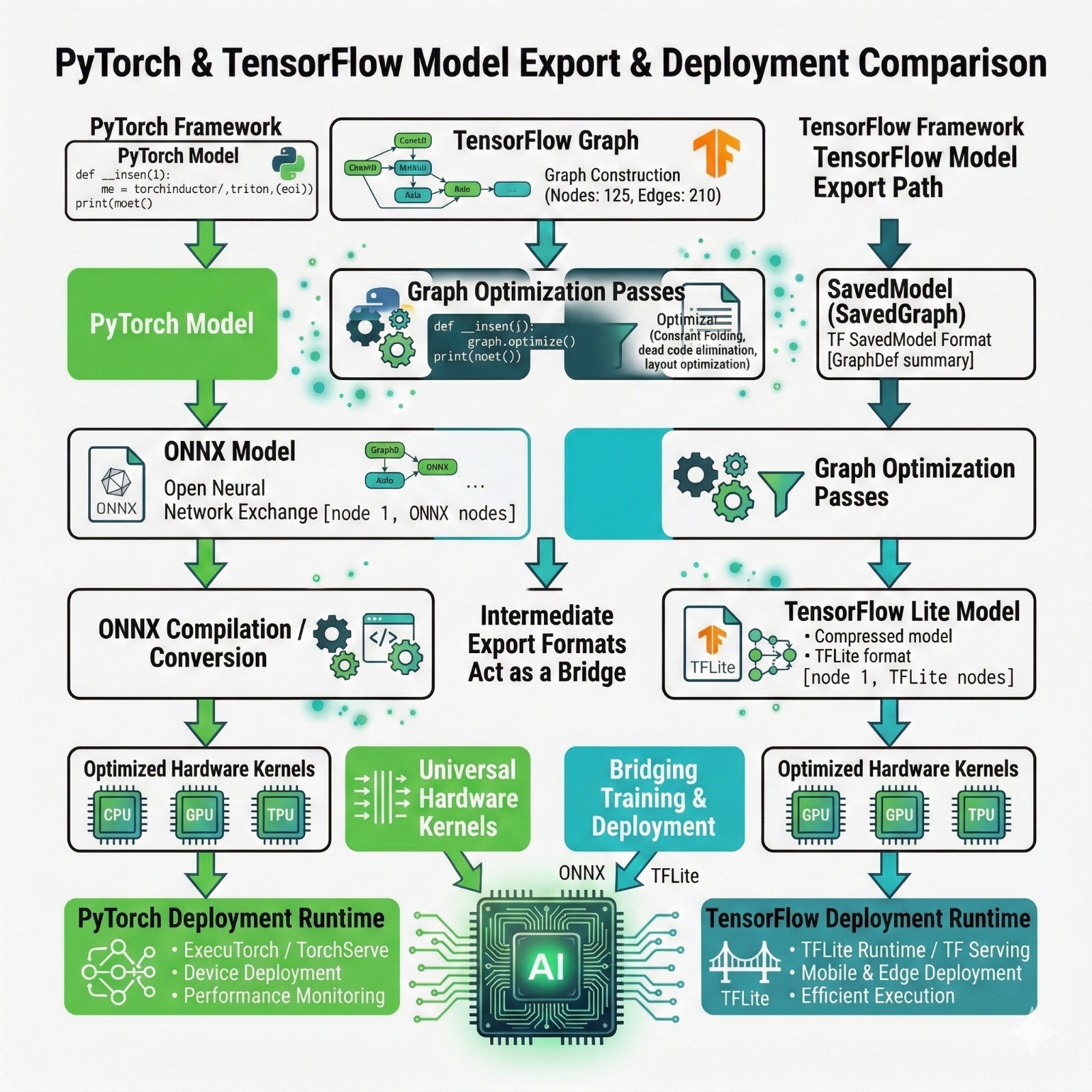 - Deployment may be C++ runtimes, mobile runtimes, embedded runtimes, or specialized accelerators.